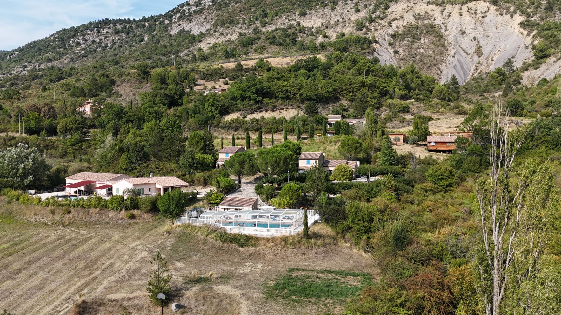 - Piscine à partager de 6m x 15m dotée d’un abri piscine haut télescopique, facilement déployable. La piscine est ouverte de fin mars à fin novembre et elle est accessible à n’importe quelle heure de la journée, en libre-service. Elle dispose d’une clôture.