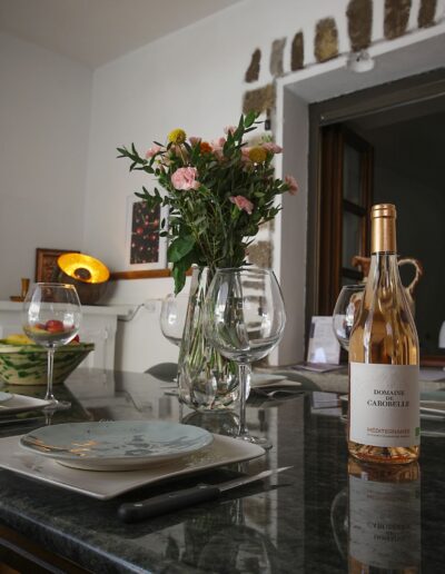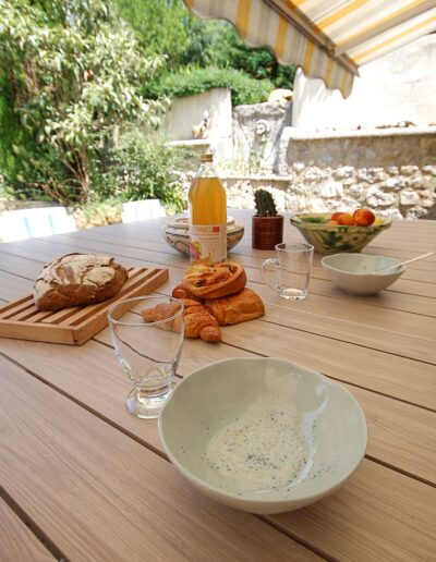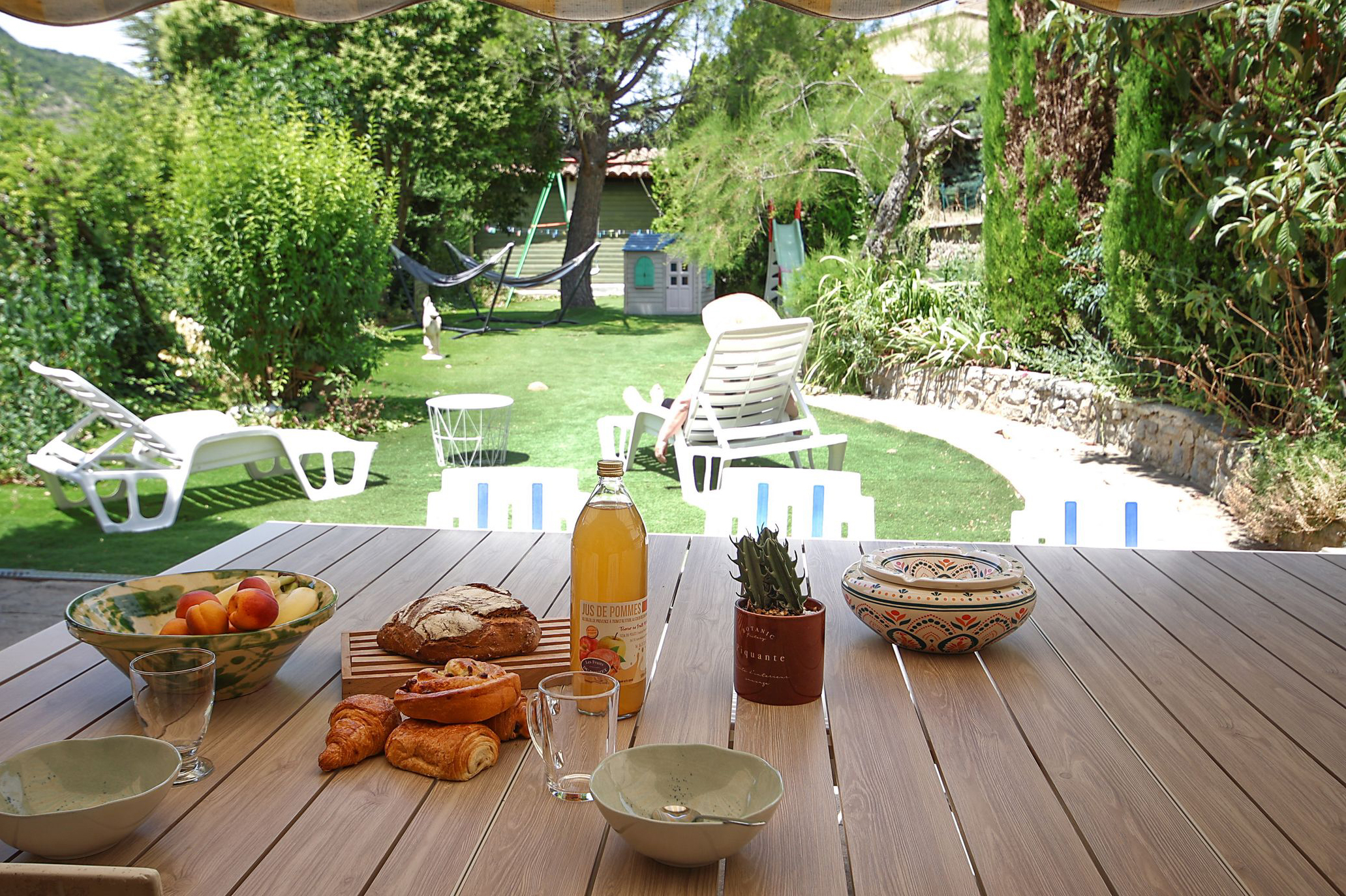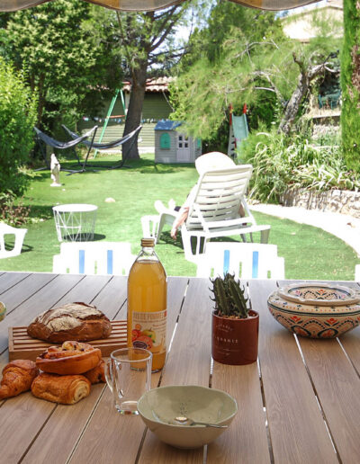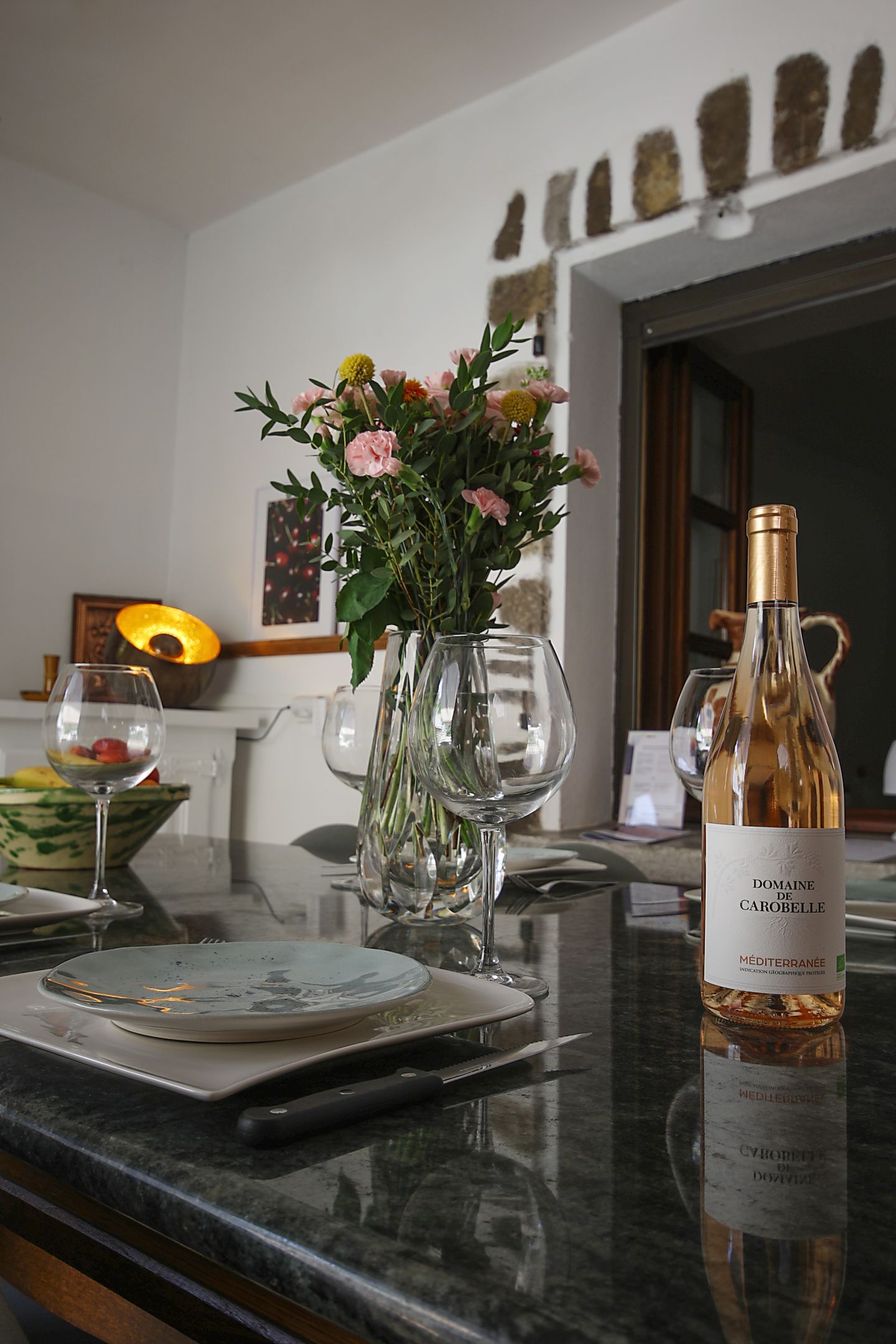 Convaincus que pour s’imprégner au mieux d’un lieu, il est essentiel d’être au contact de chaque voyageur, nous vous accueillons et partageons tous nos bons plans. Pour vous immerger dès votre arrivée, vous pourrez déguster nos mets aux saveurs du Sud (Jus et nectars de fruits de producteurs locaux et nous produisons notre propre bouteille de Gigondas « La Haute Boissière »).