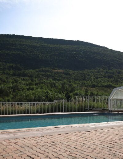 - Piscines à partager et clôturées dont une de 6m x 15m dotée d’un abri piscine haut télescopique, facilement déployable. La piscine est ouverte de fin mars à fin novembre et elle est accessible à n’importe quelle heure de la journée, en libre-service.